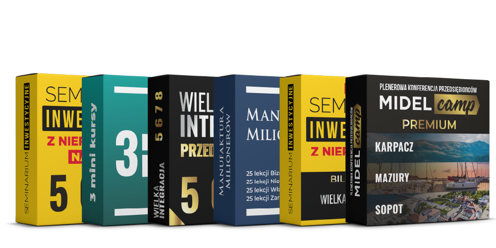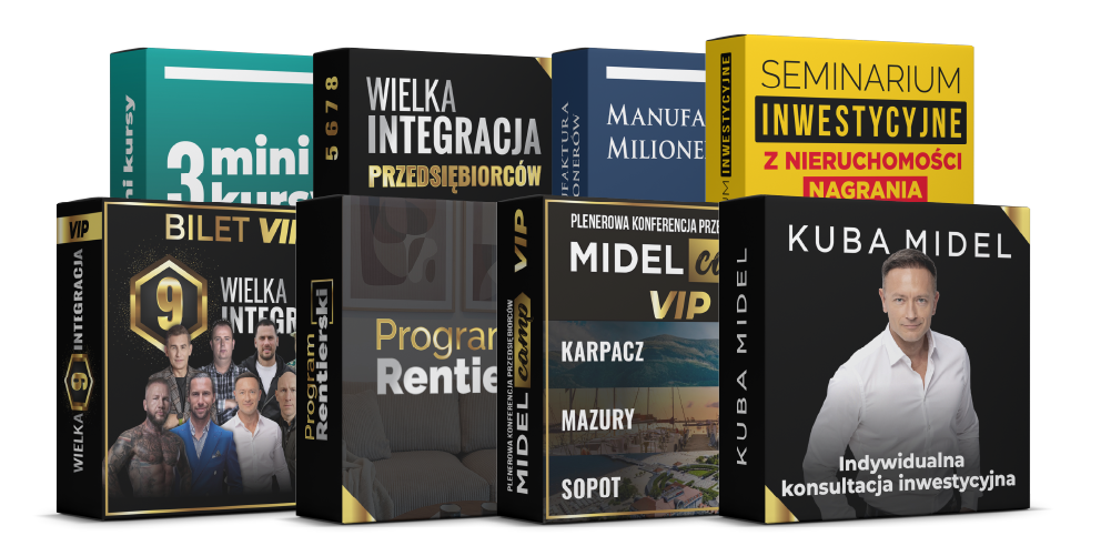 Przedsiębiorcy, którzy chcą łączyć edukację z wyjątkowym doświadczeniem i kontaktami.📦 Co zawiera:✅ Udział w wybranym MIDEL CAMP PREMIUM 2026:🏔️ 6–8 marca 2026 – Karpacz🛶 18–21 czerwca 2026 – Mazury🌊 11–13 września 2026 – Sopot✅ Bilet SEMINARIUM INWESTYCYJNE (zawiera Bilet PREMIUM na Wielką Integrację 9.0) (9–10 stycznia 2026, Łódź)✅ Pełny kurs MANUFAKTURA MILIONERÓW – 100 wykładów✅ Nagrania z poprzednich edycji:🎥 Wielka Integracja 5.0–8.0🎥 Seminarium 5.0–8.0✅ 3 Mini Kursy:💡 „12 lekcji finansowych”⚠️ „Największe błędy inwestorów”🏠 „Jak kupić pierwsze mieszkanie?”🎯 Cel: